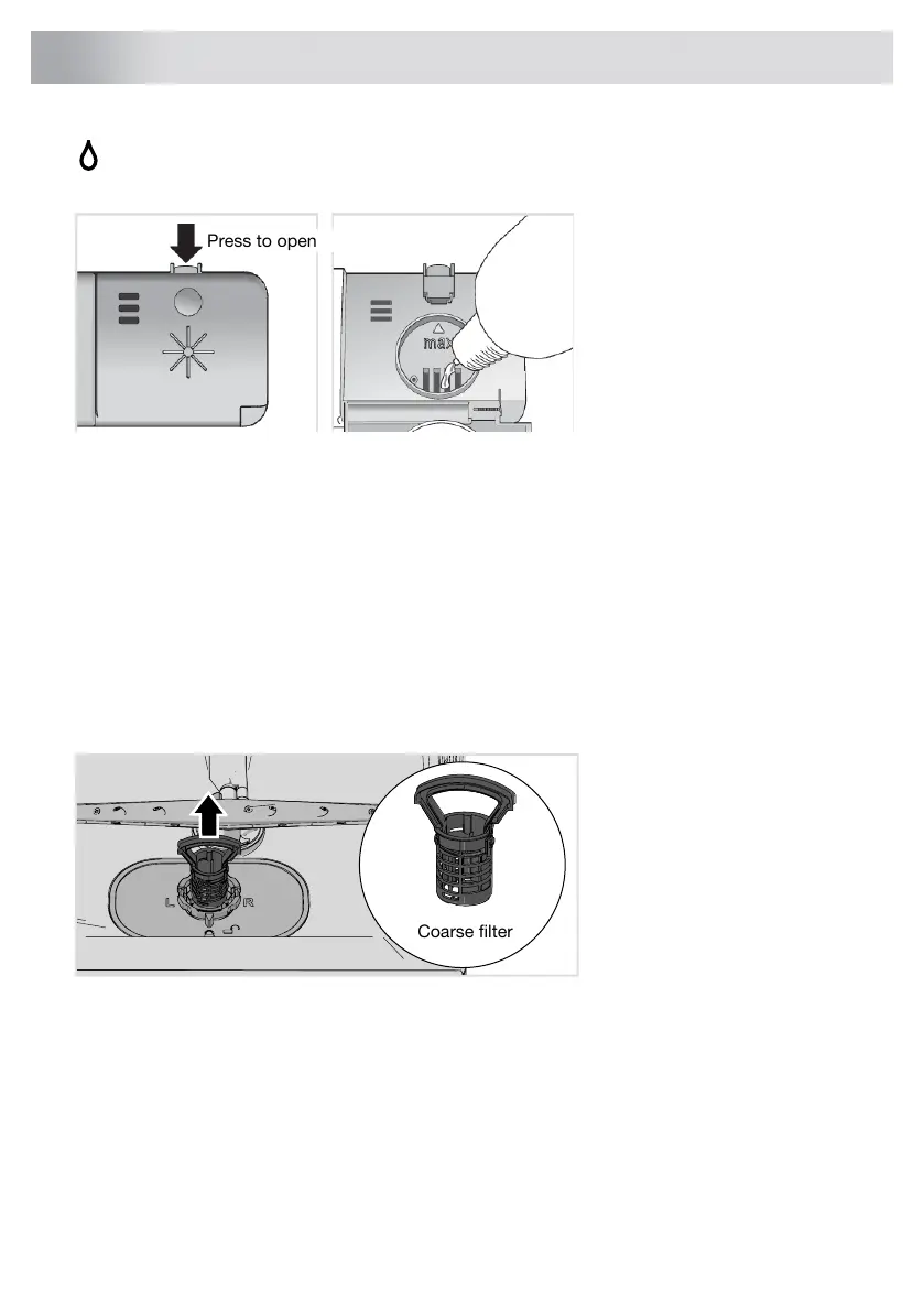 When the rinse aid needs topping up, the above symbol lights on the display.