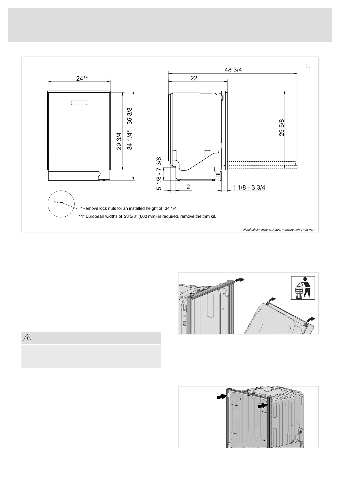 **If European widths of 23 5/8'' (600 mm) is required, remove the trim kit.