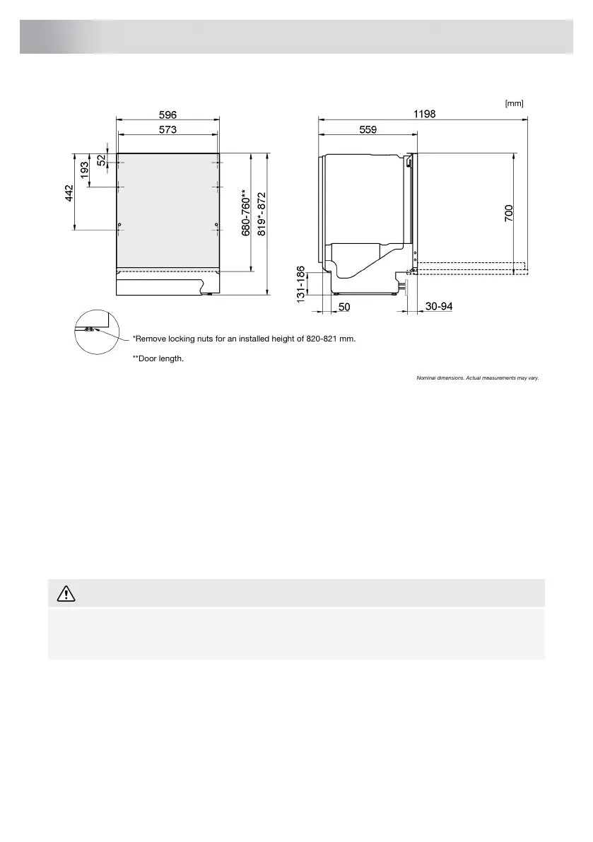 • If the dishwasher is built-in the surrounding furnishings must be resistant to any condensation