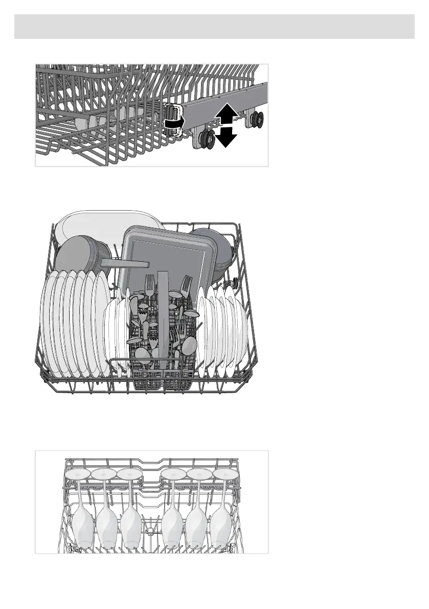 Place plates, side plates, serving dishes, pots and cutlery (in the cutlery basket) in the lower basket.