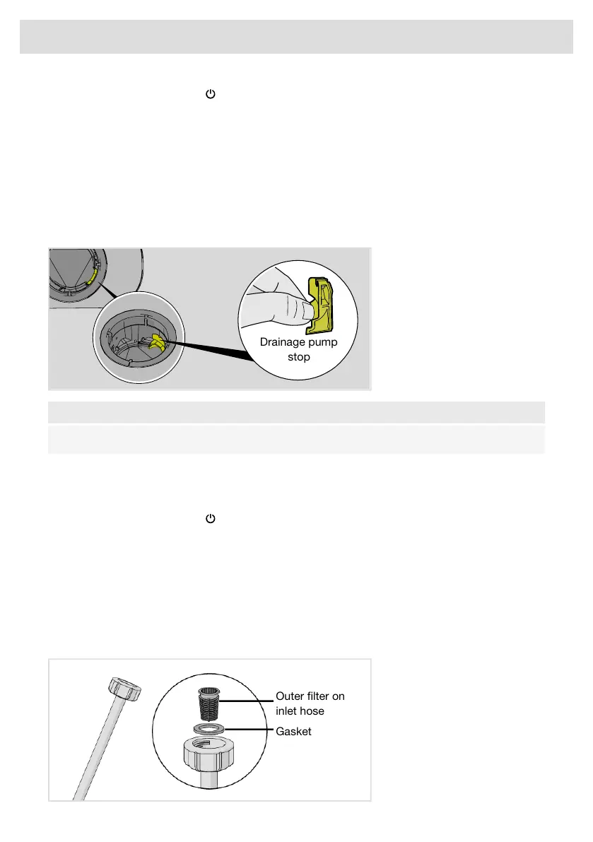 If the water supply contains small particles, the outer filter on the inlet hose may become blocked,