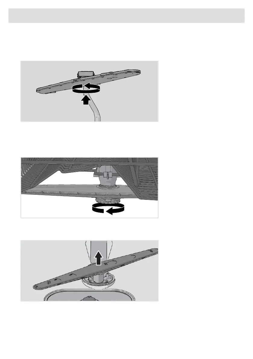• Unscrew the spray arm bearings counterclockwise to remove the spray arm from the upper