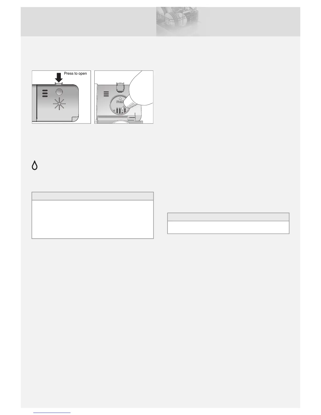 2 Carefully top up with rinse aid. Only add rinse aid to the level marked
