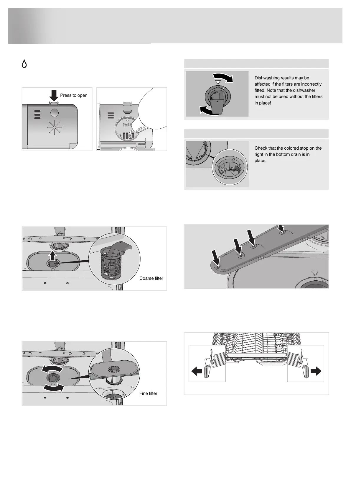 Spray arms can be removed for cleaning. Remember to fit them firmly