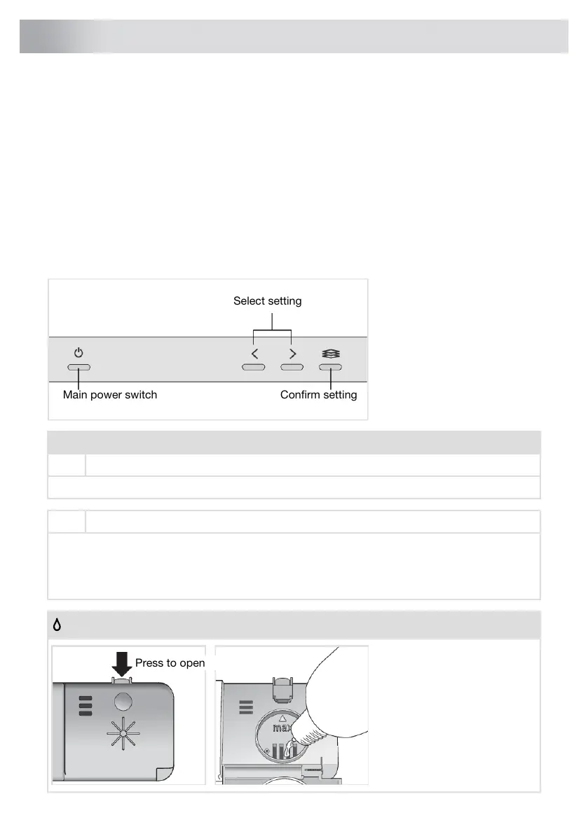 Select rinse aid dosage. The rinse aid dispenser can be adjusted between 0 (Off) and 5 (High