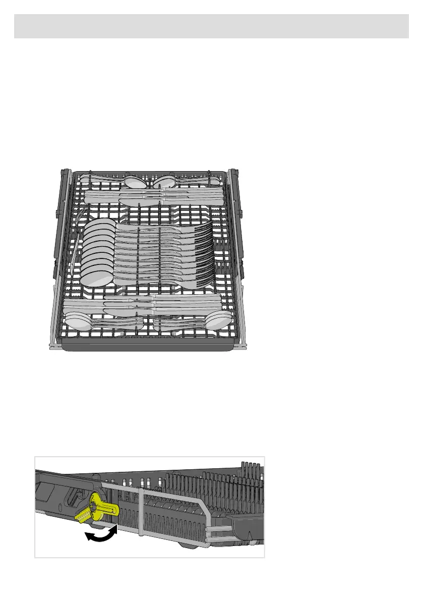 Avoid placing tall objects in the top cutlery tray. They can block the top spray arm.