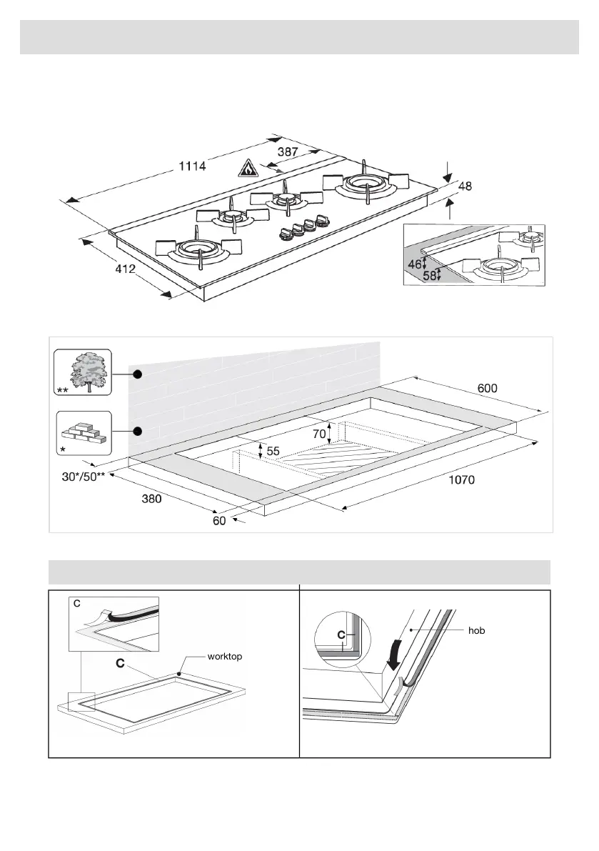 Asko HG1145AB - Appliance Built-in Dimensions and Cut-out; Worktop Cut-out and Sealing Tape