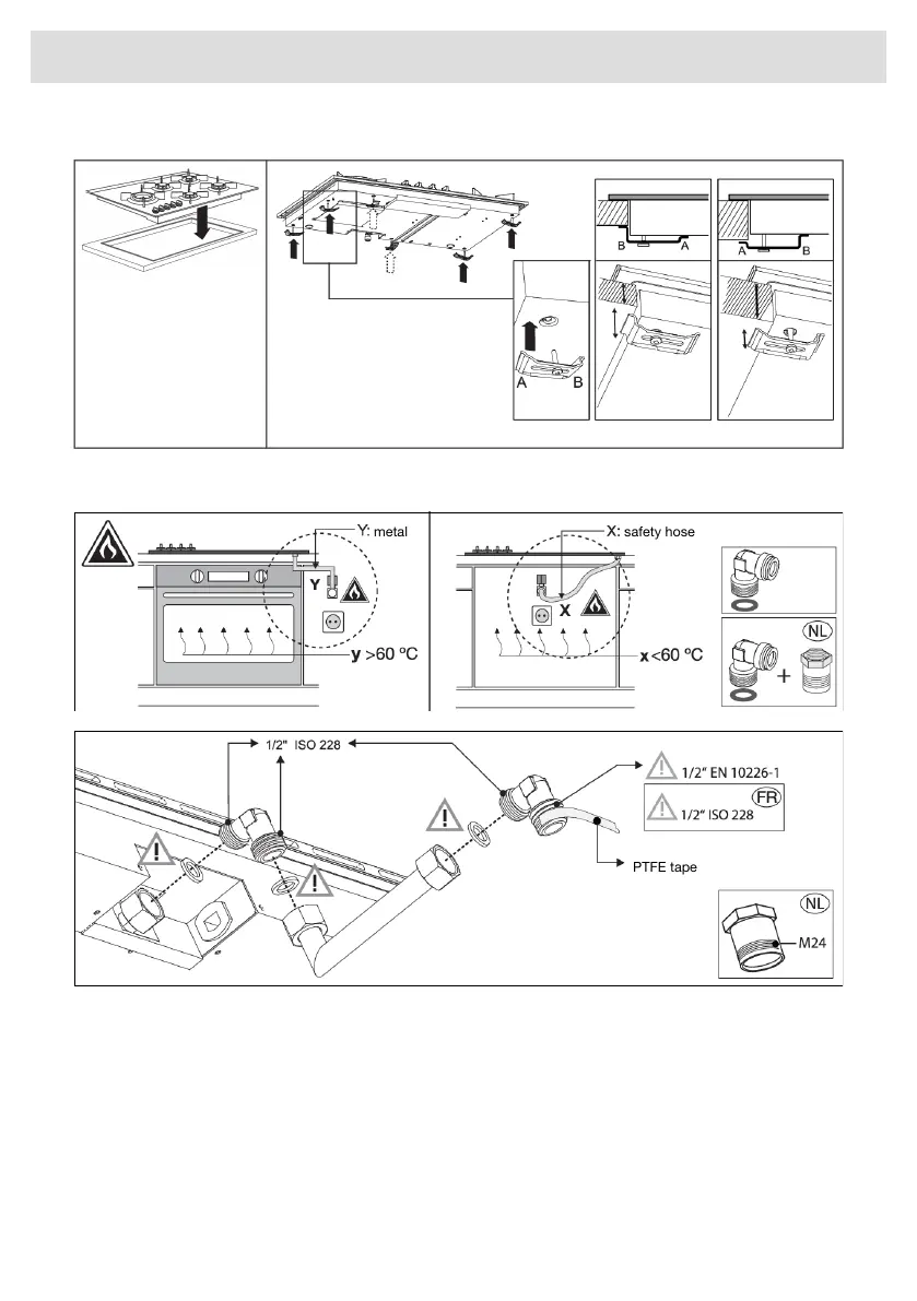 Asko HG1145AB - Appliance Mounting in Worktop; Gas Connection Diagrams and Specifications