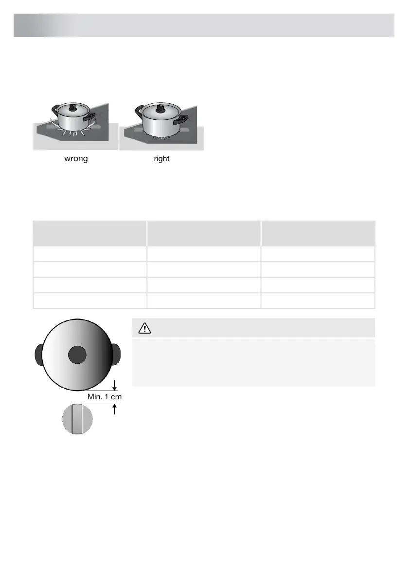 Only use cookware with a suitable diameter. The cookware must not protrude over the edge of the