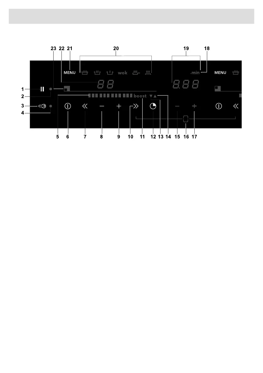 16. Bridge Induction function (two zones are connected; this creates one ‘big’ zone. Control 2 zones
