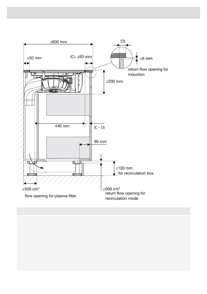 • With recirculation, please note that condensation may occur if the kitchen unit is installed
