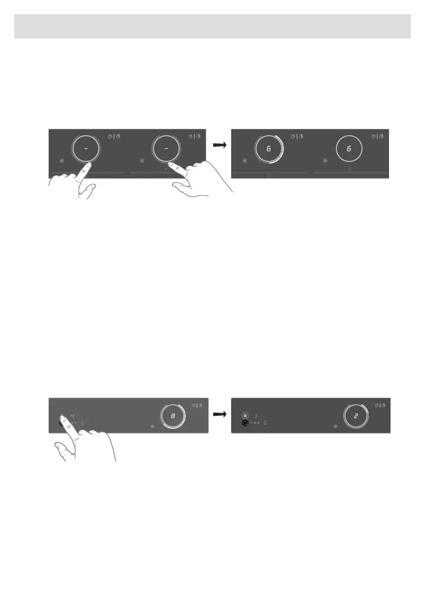 • The power level or temperatures are displayed simultaneously on both connected cooking