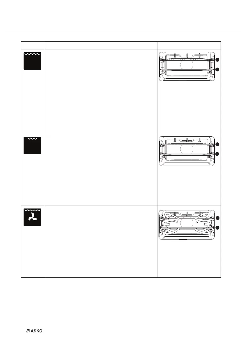 • Heating by means of the top heating elements.
