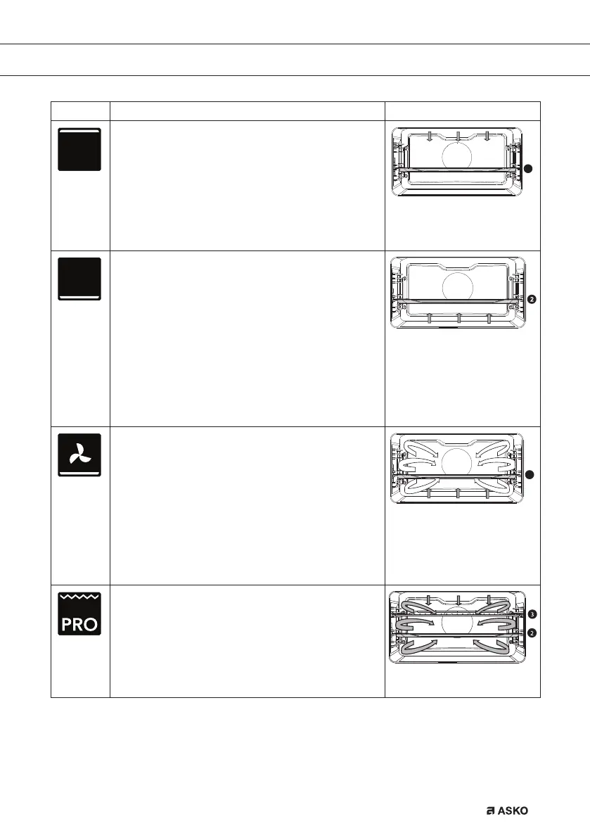 • Heating by means of the lower heating element.
