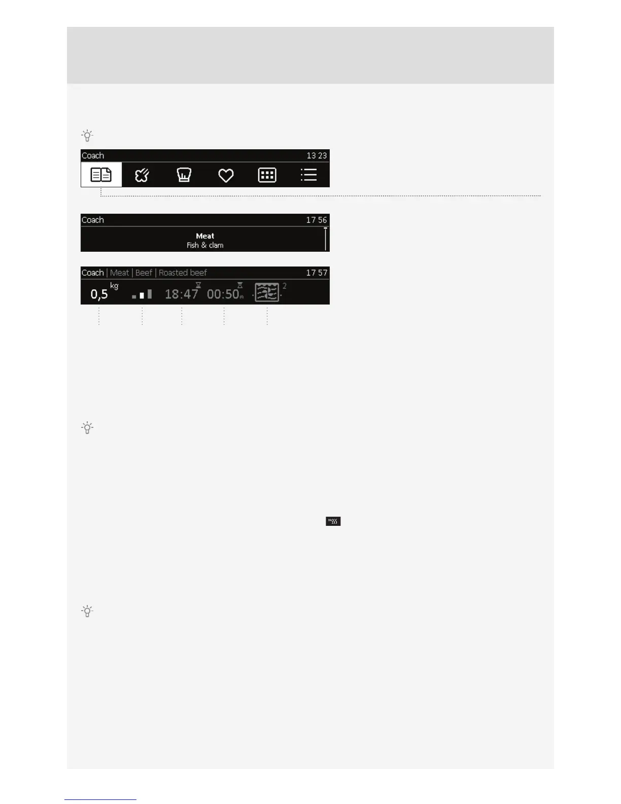 When you select the food, the following note will appear: »Selected program includes preheating.« Preheating