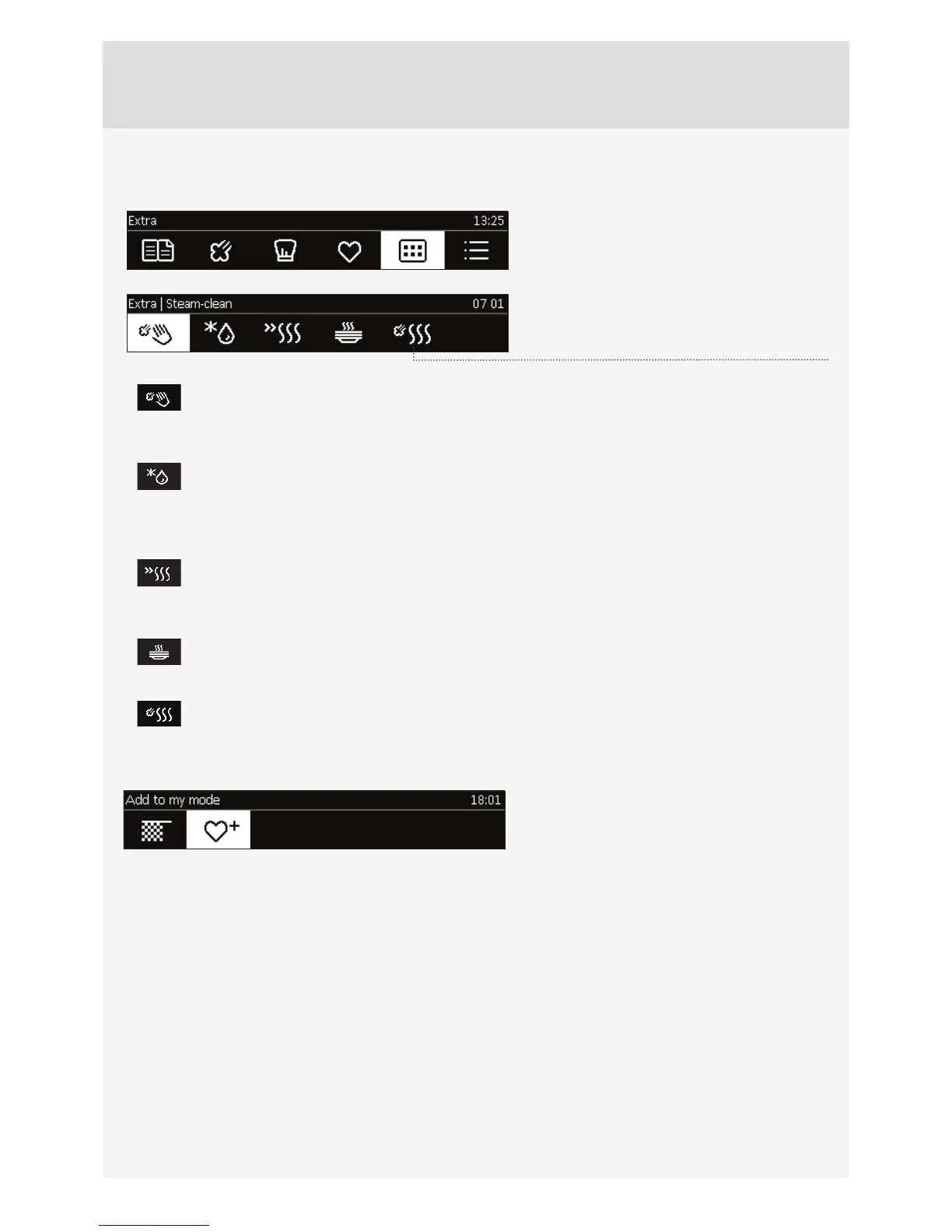 This mode is used for reheating cooked food. Owing to the use of steam, there is no loss of quality. Taste and texture