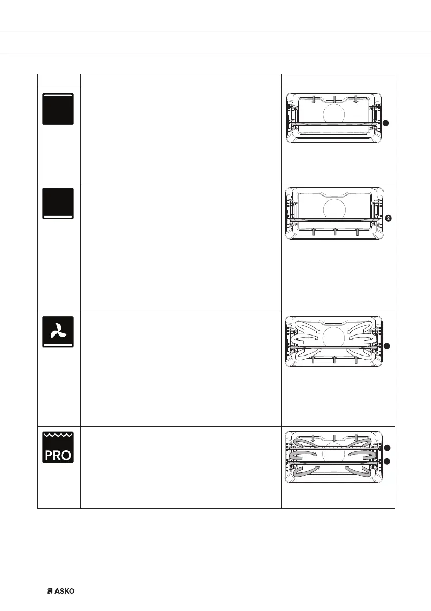 • Heating only by means of the lower heating