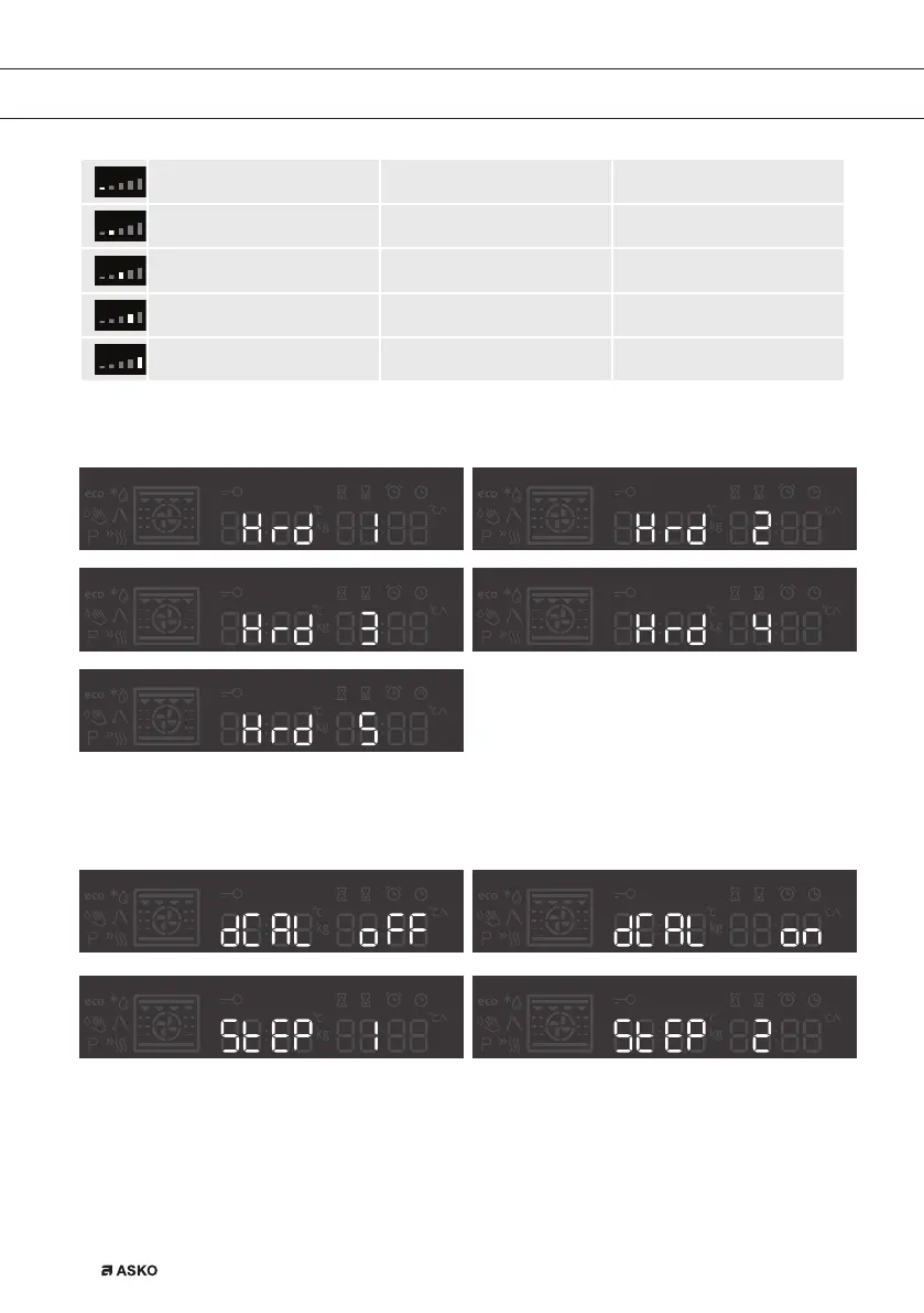 You can selected between five different options of water hardness levels. Water hardness level 5 is