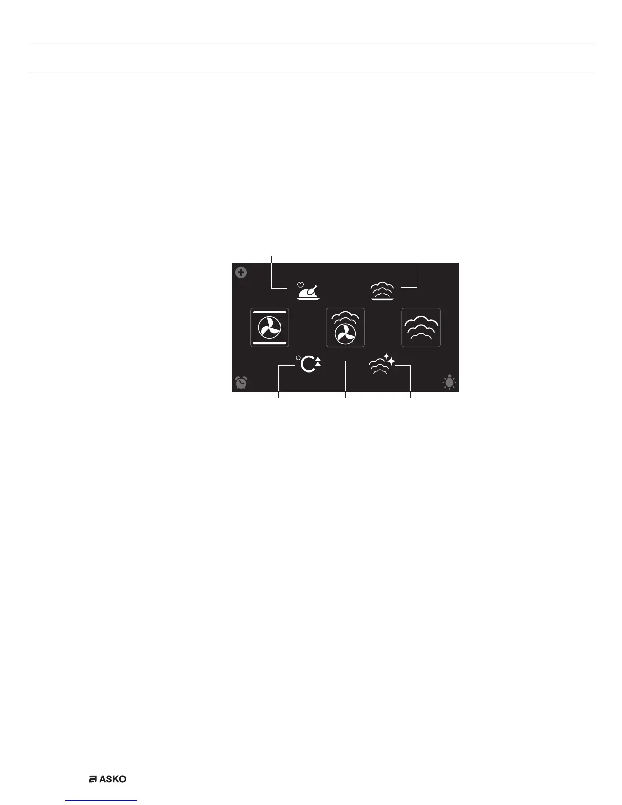 • Tap on the ‘lamp’ symbol to switch the oven light on or off.