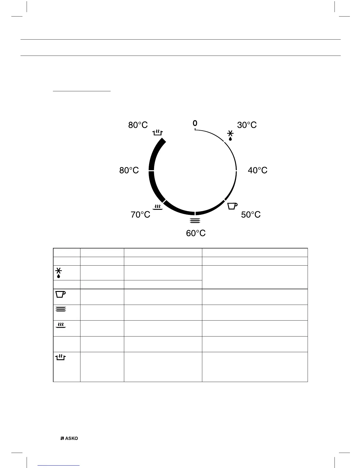 60 °C Vorwärmen von Geschirr Vorwärmen von Tellern und Schalen.