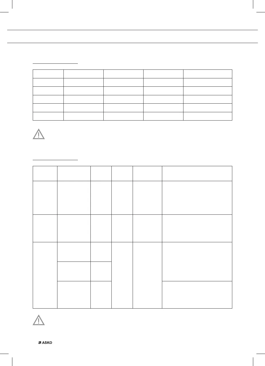 Program Food Weight (kg) Time (min.) Standing time (min.)