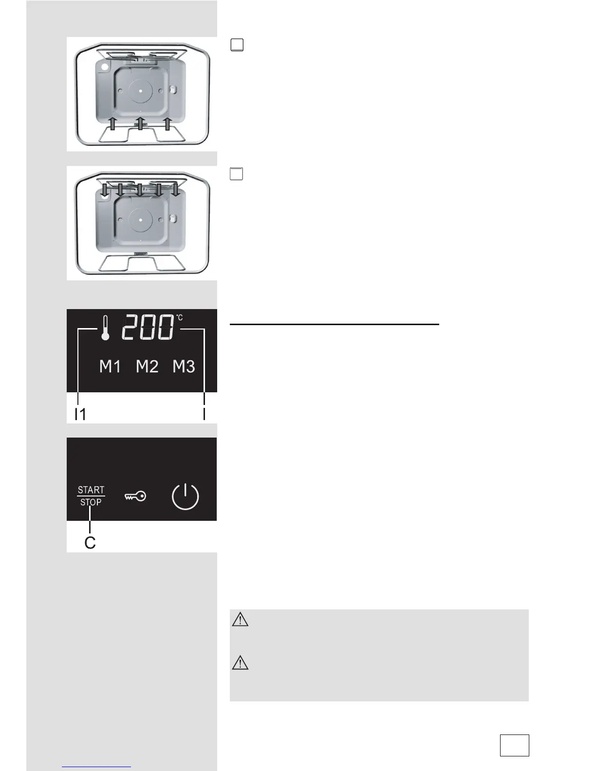 - Use the (H) “+, -” keys to set the oven temperature in the