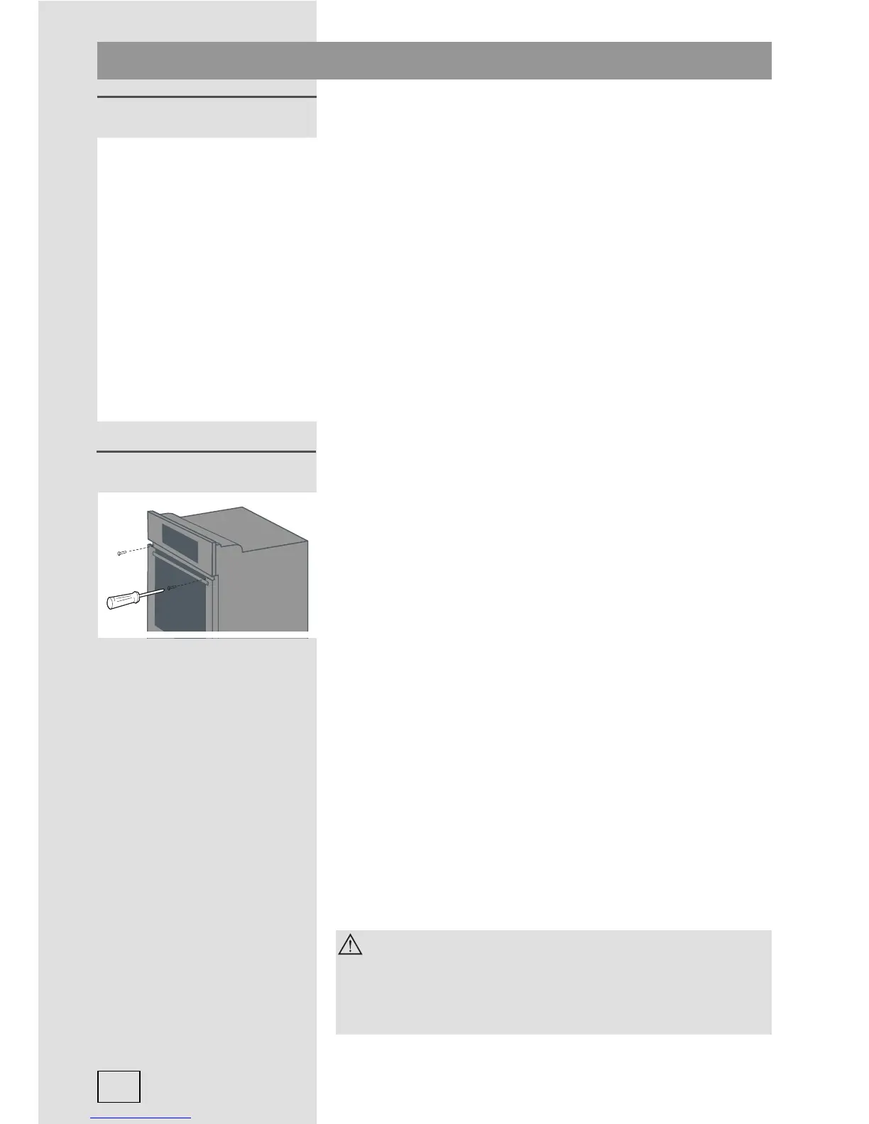 • The piece of kitchen furniture the appliance is built into must