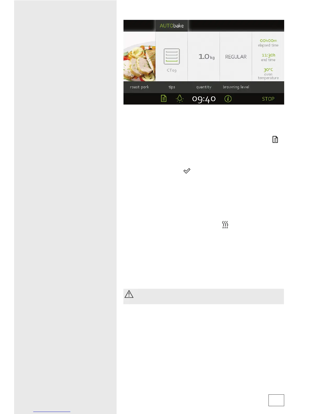 symbol to display the temperature and remaining time sliders.
