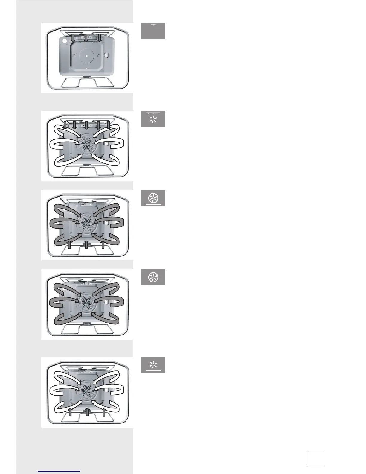 operate simultaneously. The fan at the oven back wall causes