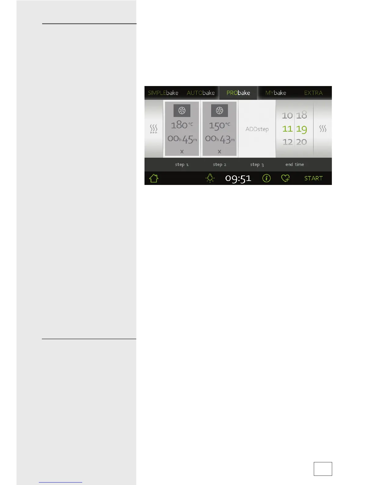 • Touch the STEPbake fi eld to display the fi elds for three