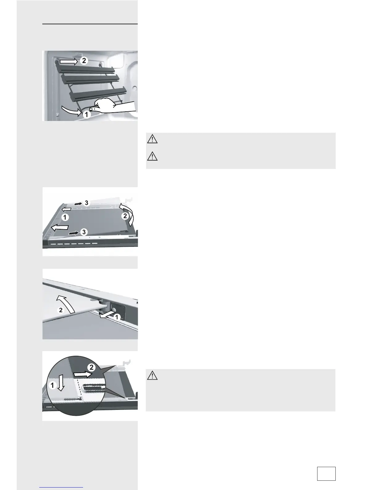 • Do not wash the telescopic pull-out guides in a dishwasher.