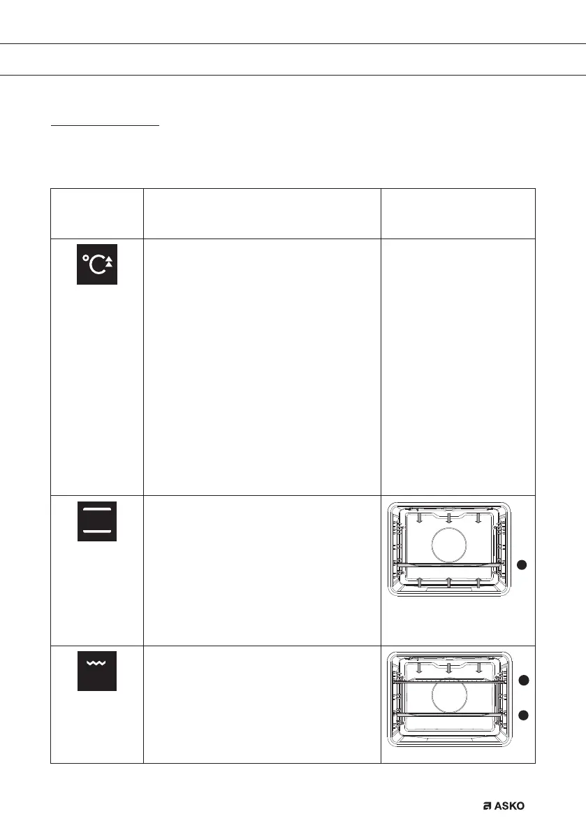 Use the table to select the right oven function. Also consult the cooking instructions on the food