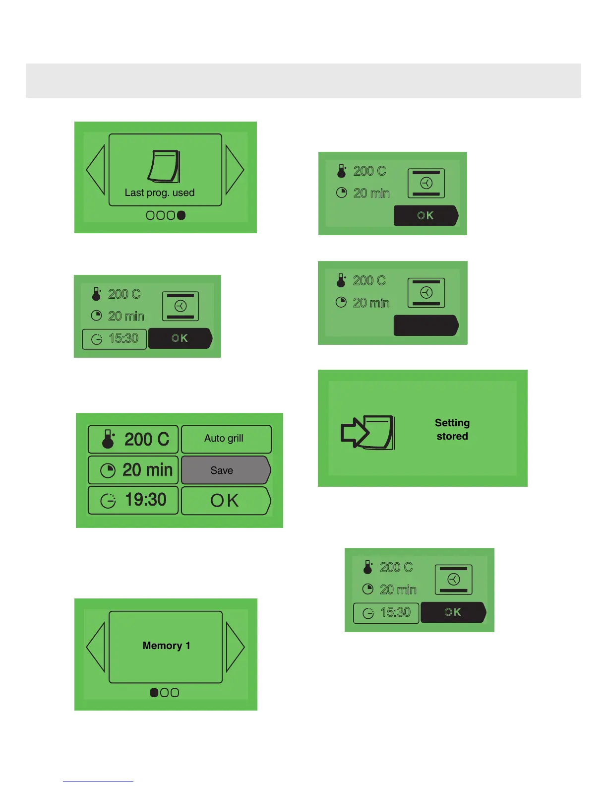 settings stored. Press OK to start cooking.