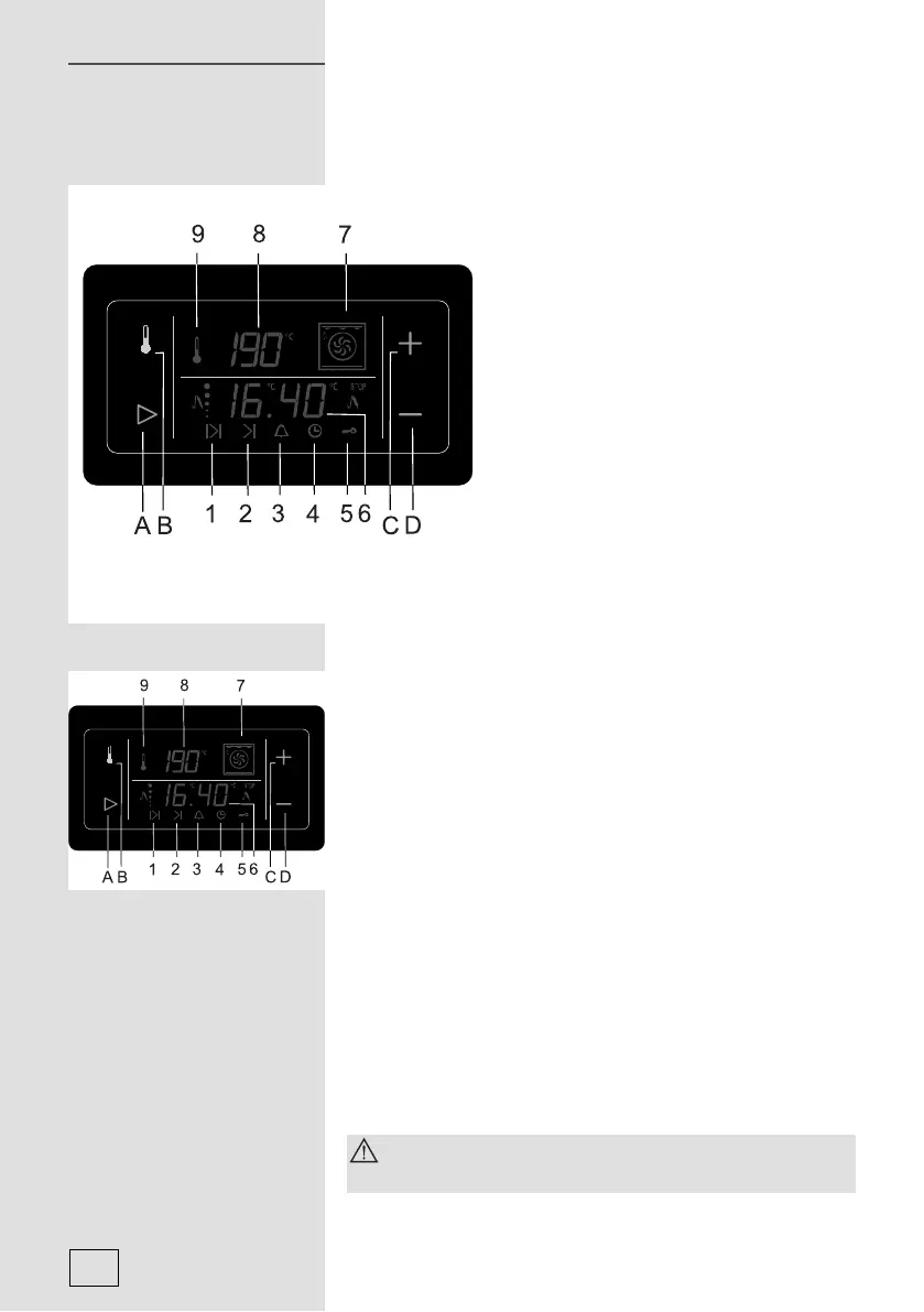 enable the operation of the oven, use the (C) and (D) sensor keys