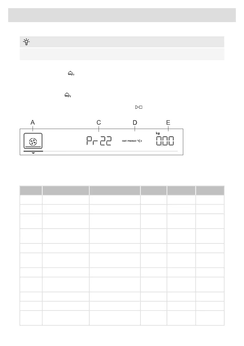 Press and hold the key to display the automatic programs on the display unit (see table).