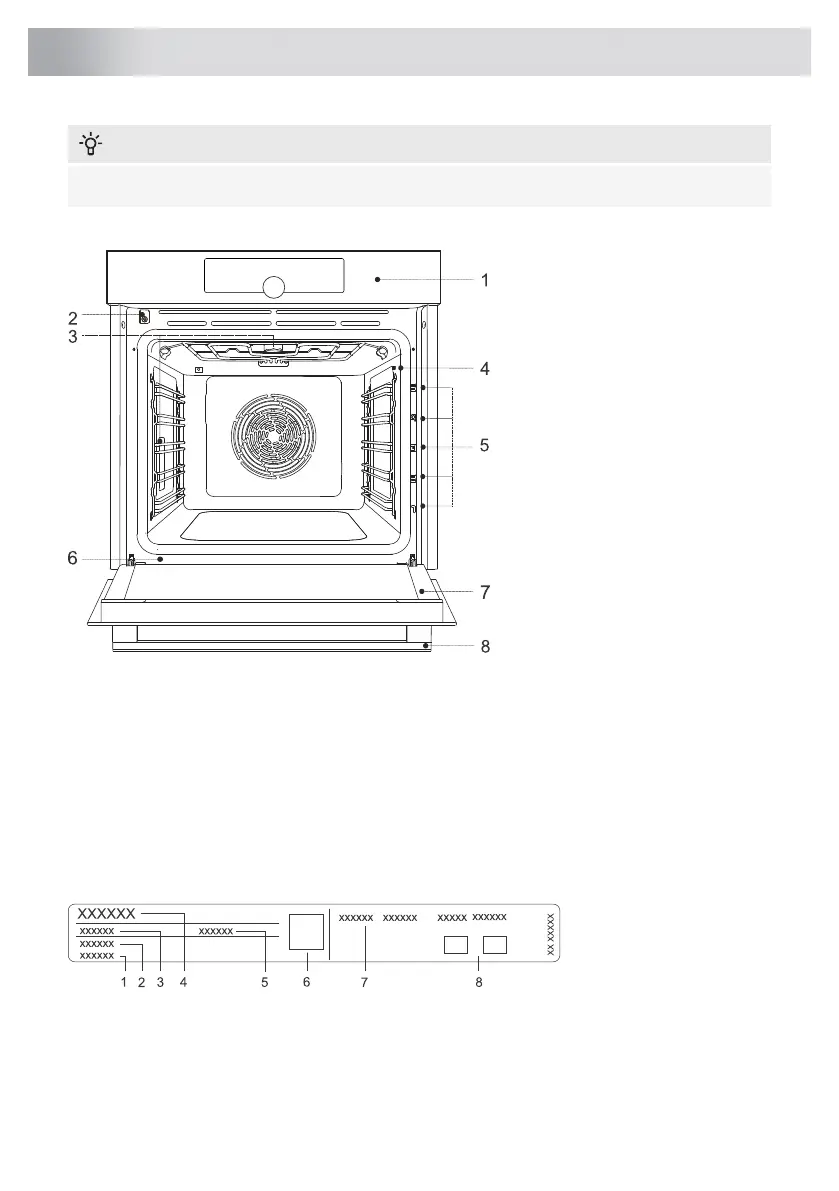 A rating plate with basic information about the appliance is attached to the edge of the oven.