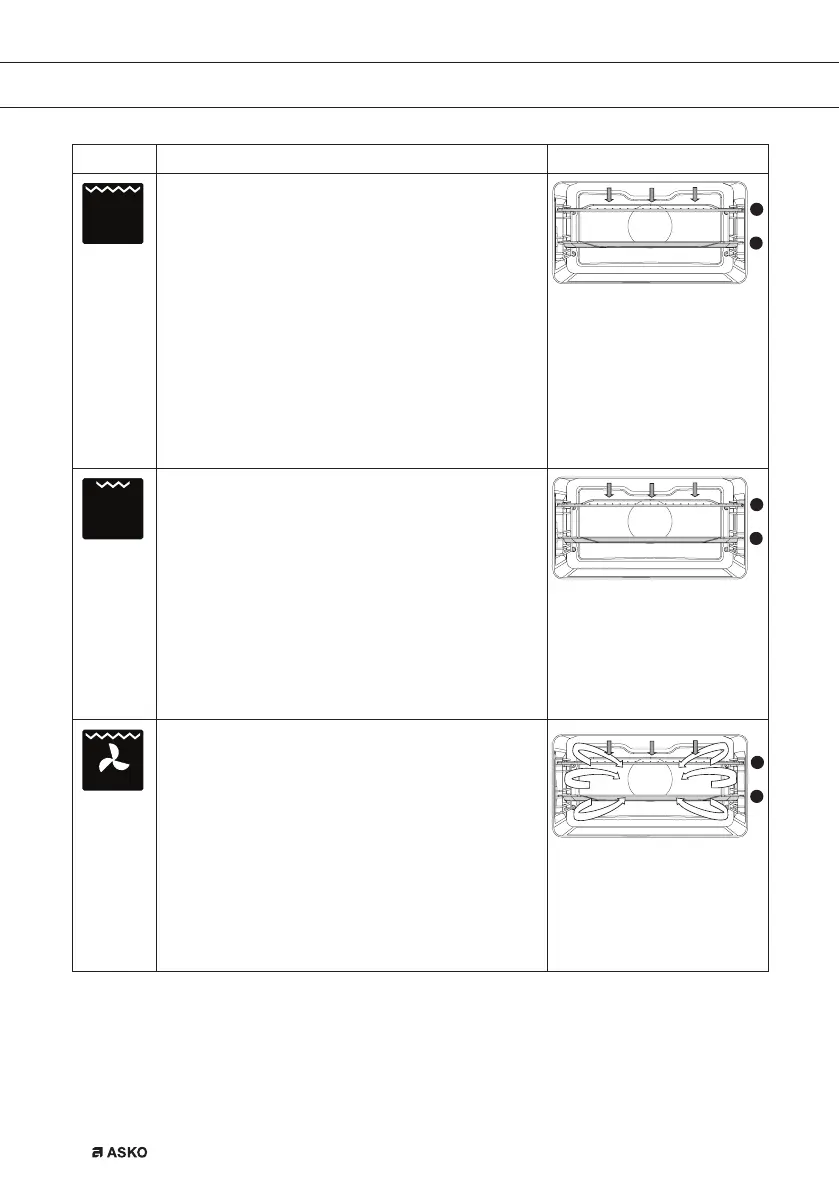 • Heating by means of the top heating elements.