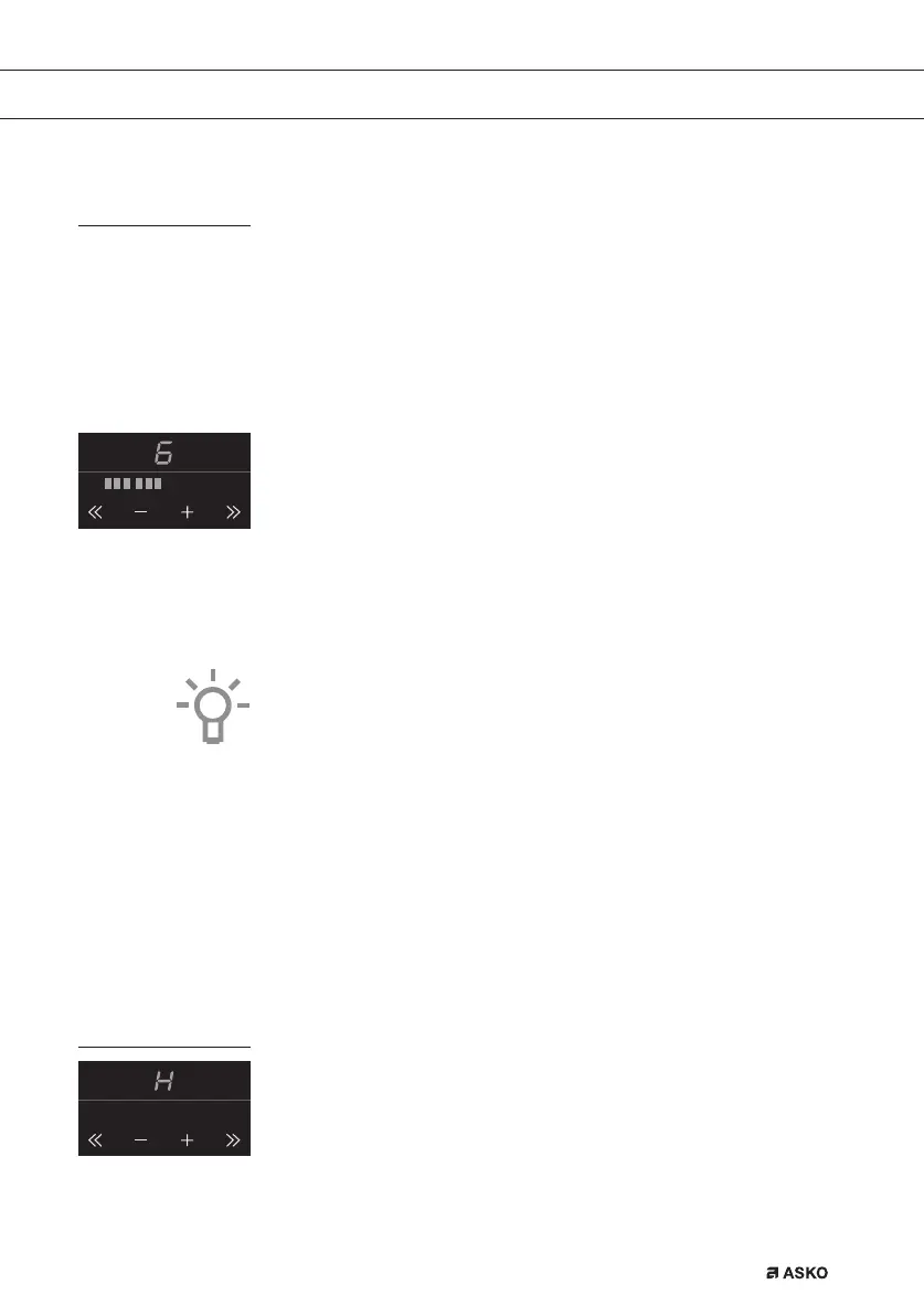 • With the + or - button you can raise or reduce the power setting