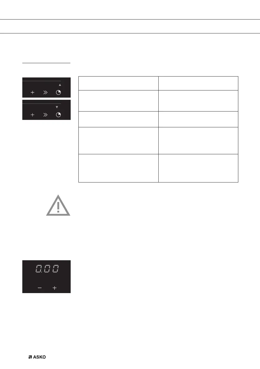 • Per set of two cooking zones (front and back) one timer/kitchen timer is available.