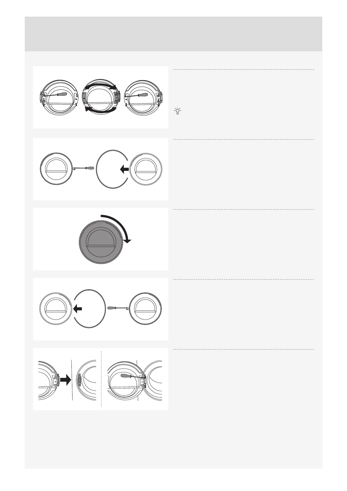 Rotate the door ring by 180°, install it onto the