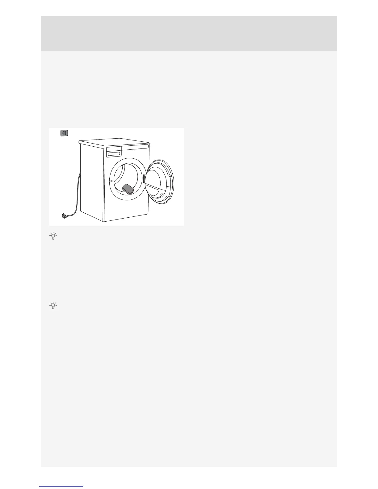 Disconnect the dryer from the power mains and open the door towards you. Clean the dryer drum with a