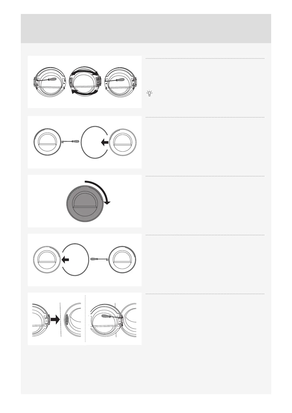 Rotate the door ring by 180°, install it onto the