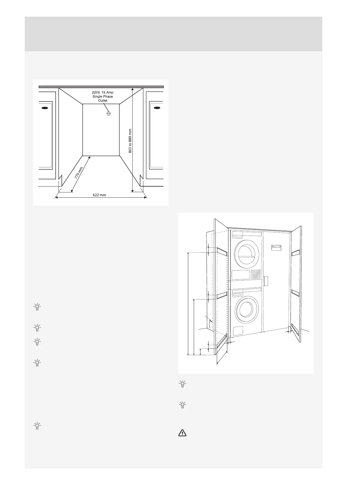 • Creating a gap for the dryer in the kitchen