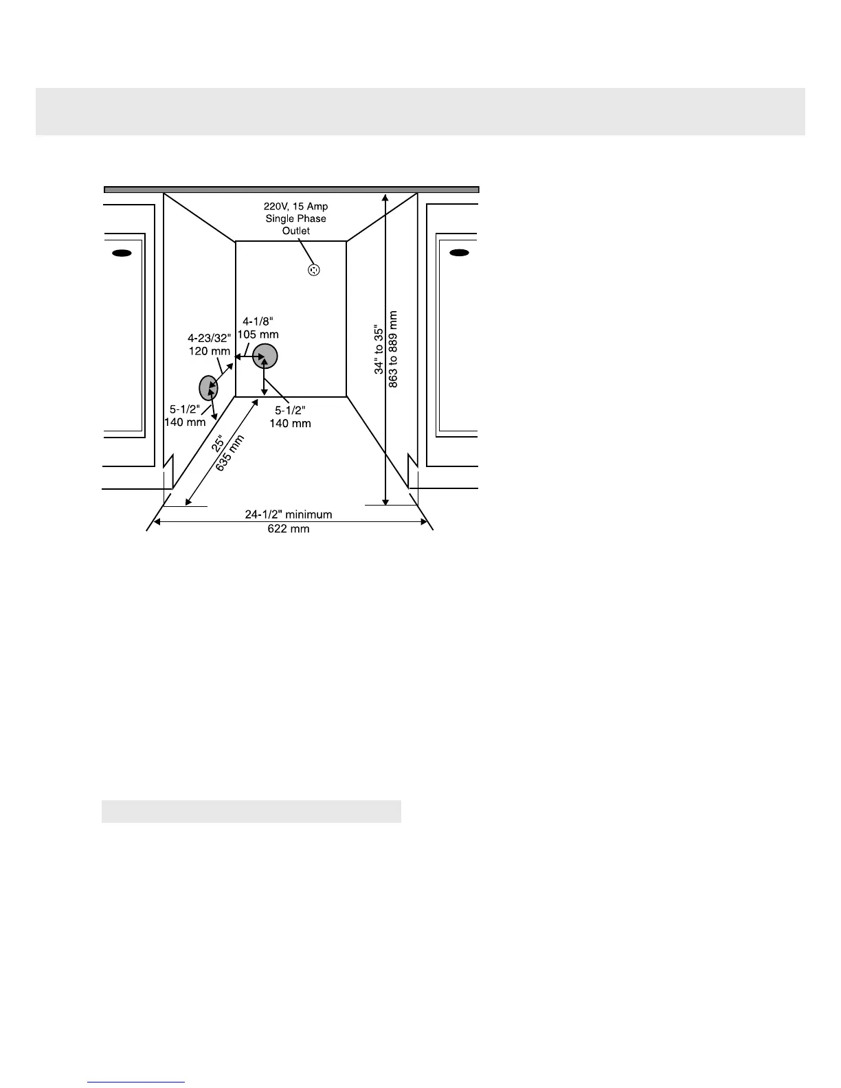 higher than 34-1/2” (876 mm). Hole measure-