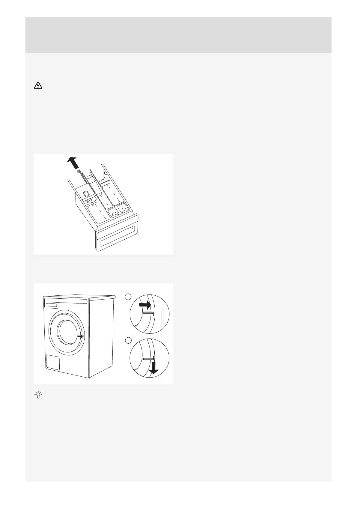 to be drained from the washing machine drum manually. See chapter "Cleaning the trap and drain pump" in