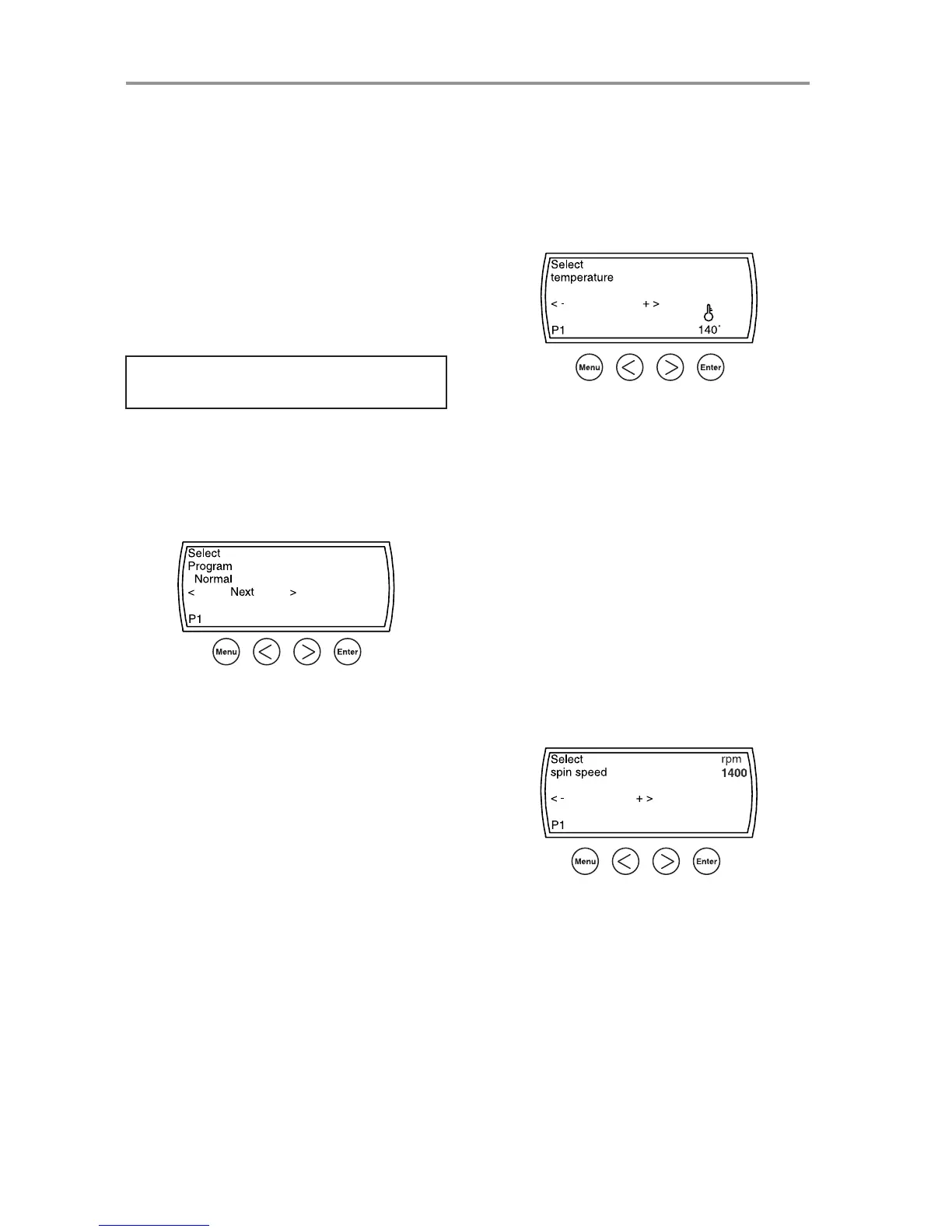 1. Press MENU until “Select spin speed” displays.