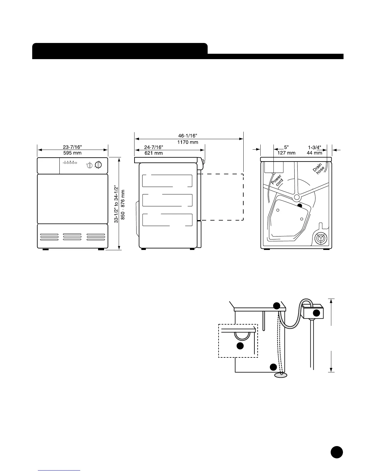 1/2" (12 mm) of space between the dryer and the wall or cabinet.