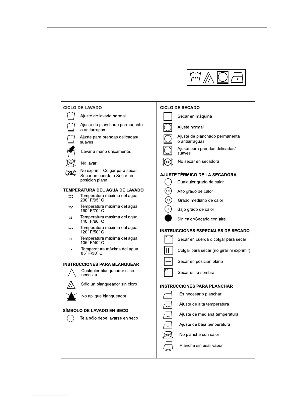 el lavado. ¡Lea cuidadosamente estas etiquetas! Las