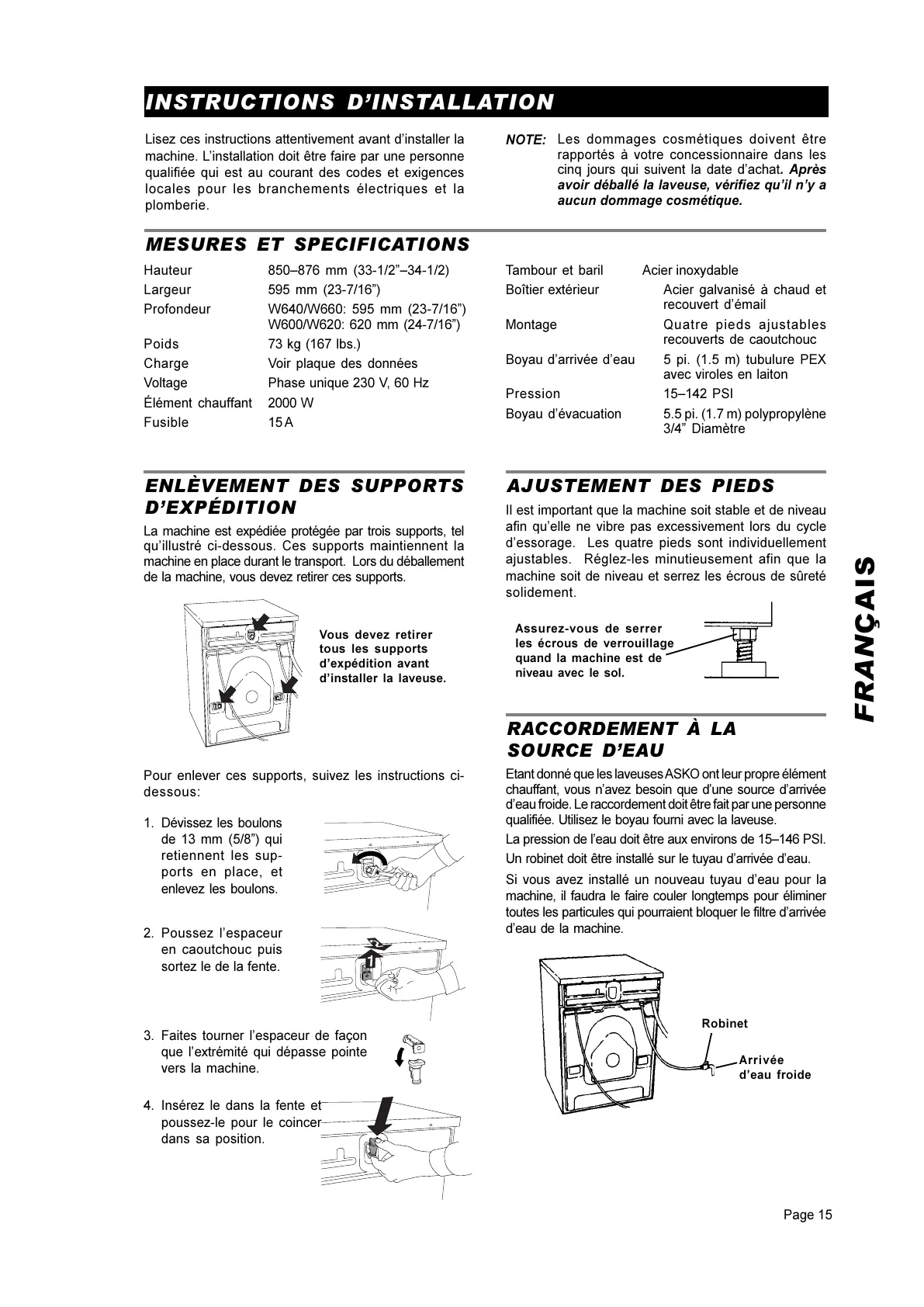 Un robinet doit être installé sur le tuyau darrivée deau.