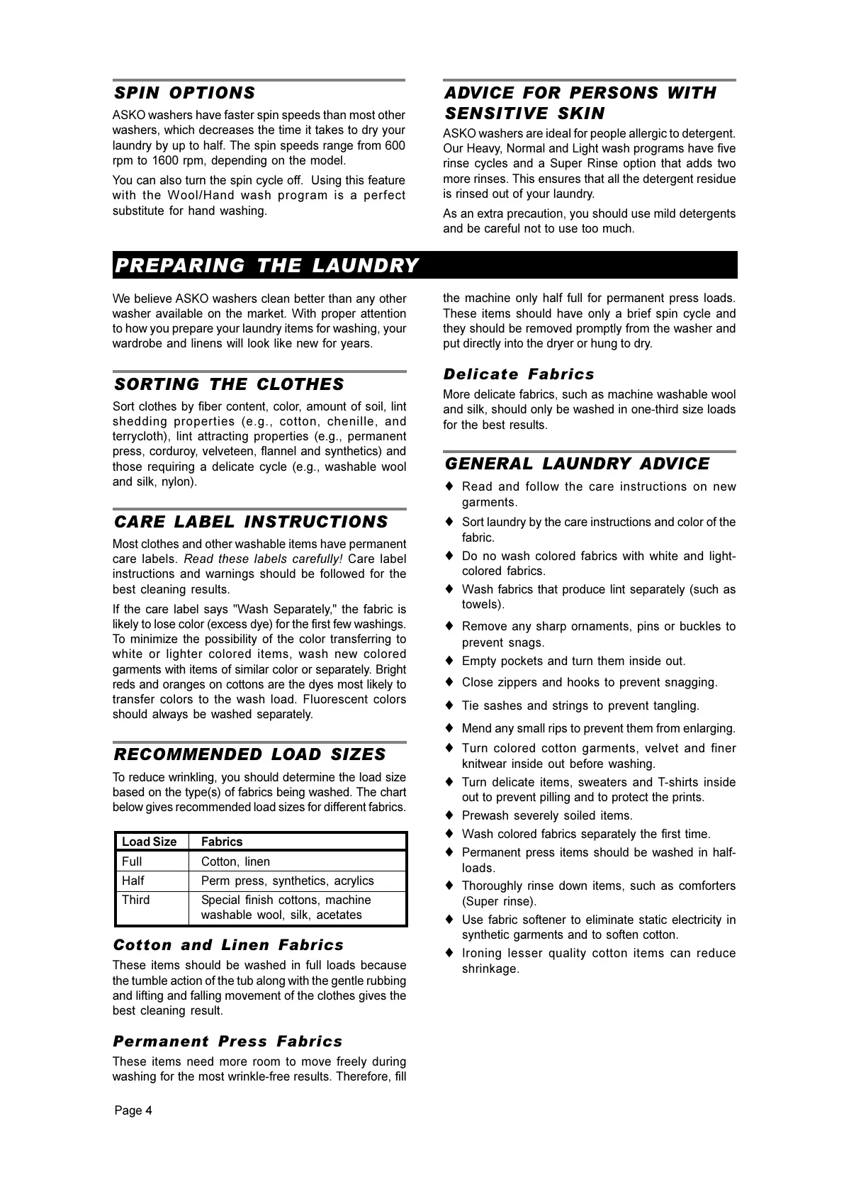 GENERAL LAUNDRY ADVICE